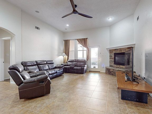 Step into this welcoming Rio Rancho home where comfort and style blend seamlessly. The main living area features a cozy fireplace and open floorplan. The spacious kitchen is a chef's dream, boasting a double oven, upgraded refrigerator, and ample counter space. There was a newly recoated roof in the summer of 2024. Bonus water softening system for added comfort. The primary suite includes a fireplace, big bathroom with separate sinks, and a large walk-in closet with extra storage space, perfect for organization. A versatile bonus room can serve as an office, playroom, or additional living area. With an inviting layout, this home is perfect for entertaining or relaxing. Backyard is low maintenance with a covered patio. Schedule your showing today!