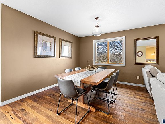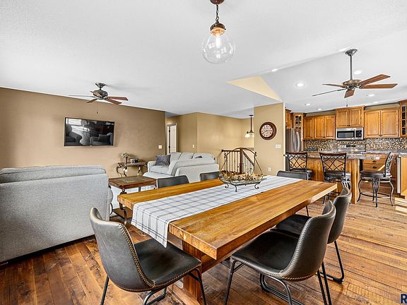 Nestled in the highly desired Westside Sioux Falls location (near Kuehn Park), this 3 beds 3 bath oversized 3 stall garage seamlessly blends spaciousness, comfort, and modern features. Step inside to the oversized foyer with a storage closet and up to a vaulted ceiling throughout the main level. Durable solid walnut floors cover most of the main floor space. The kitchen has fresh oak cabinets, modern countertops, stainless steel appliances, and a generously sized breakfast island for both style and functionality. Step outside the sliding doors to the oversized deck with storage space below. The primary bedroom has an ensuite bathroom with a soaker tub and shower and a three-sided fireplace for ultimate relaxation. The lower level has a second gas fireplace, spacious laundry room, versatile third bedroom with a walk-in closet and pass-through door to the bathroom, and lastly a convenient walk out to the tranquil fenced-in backyard.