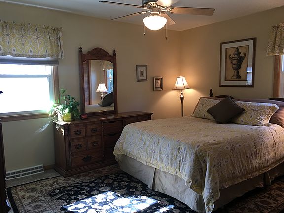 Expansive fully remodeled Lyle Miller 4 bedroom ranch home located in quiet east side neighborhood. Remodeled kitchen features quartz countertops, stainless steel appliances, bamboo floors, an eat-in breakfast area and dining room. Bamboo flooring extends into dining room, living room and hall. New windows and added insulation for energy savings. Stunning main floor family room features rustic exposed beams of the vaulted ceiling. Master bedroom has updated ensuite bath. Tiled wet bar, bedroom, office and full bath in lower level--separate entrance from garage. 2 car garage with basement access, outdoor storage shed, privacy fence, backyard patio and deck.