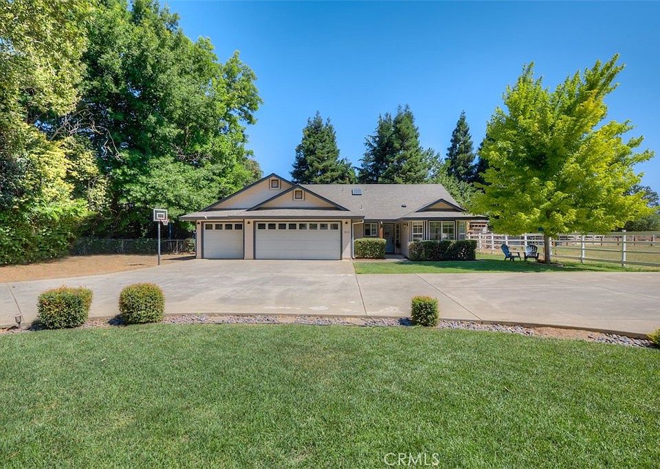 Prepare to fall in LOVE!! Nestled in a peaceful setting, this 3-bedroom + a bonus room, 2-bathroom home spans 1,520 square feet, a perfect blend of rural charm with modern farmhouse elegance. Situated on a generous 1.02-acre lot, this property features fully landscaped grounds, a new roof, RV parking, a circular driveway, and a fenced pasture—ideal for those seeking a serene lifestyle with modern amenities. Upon entry, you're welcomed by vaulted ceilings, luxury vinyl plank flooring, a charming dining area, and a beautiful fireplace. This home has been thoughtfully updated, showcasing a farm-style kitchen with butcher block countertops, a sleek subway tile backsplash, stainless steel appliances, a built-in microwave and a darling breakfast nook that combines functionality with stylish design. Each spacious bedroom offers ample closet space and modern finishes. The large master bedroom stands out with a stunning shiplap accent wall, a tastefully updated ensuite with an oversized closet, double sink vanity and abundant natural light. Outside, the property boasts mature landscaping and trees providing privacy and a picturesque backdrop. The fenced pasture offers plenty of space for pets, hobbies, FFA projects, homesteaders and room for the kids to play. Additional features include a darling chicken coop, 3 fruit trees ( 1 orange & 2 variety of cherries ) garden bench/beds, a pergola, public water and a well with a storage shed . This property truly has it all! Located off the Midway but close enough to downtown Durham, Almendra Winery for date night and Durham Park. Don’t miss out on this Durham gem!!