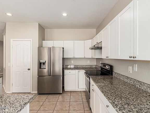This 3 bedroom, 2 bath home offers 1,726 sq ft of airy and open living with soaring ceilings, abundant natural light, and a beautifully maintained facade. Inside, you'll find a bright floor plan with large windows, tile and wood-look flooring, neutral paint tones, and updated fixtures throughout. The spacious kitchen boasts non-laminate countertops, a large pantry, and plenty of cabinetry for storage. Step through the sliding glass door to a covered patio overlooking a low-maintenance backyard with stone and gravel landscaping, all enclosed by block fencing for privacy. With a 2-car garage plus additional slab parking, this home combines convenience with everyday comfort—all within a welcoming, family-friendly community.