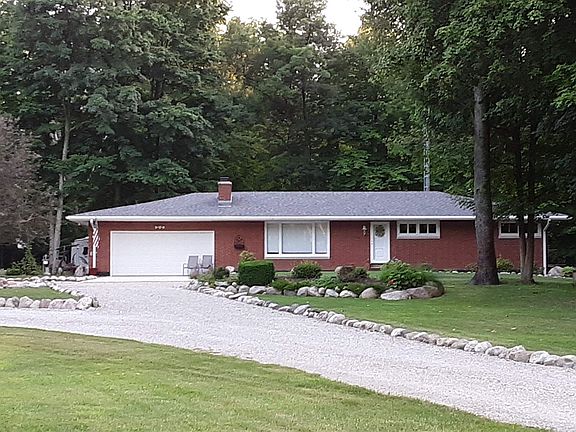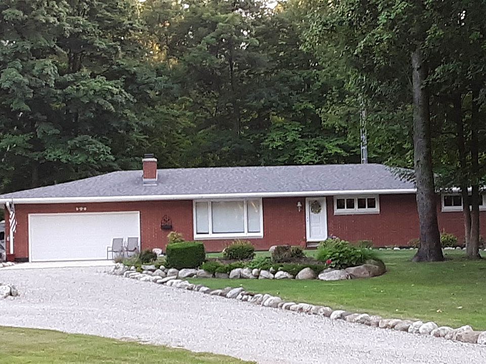 Absolutely beautiful piece of property. Brick ranch with many updates. Newer custom cherry kitchen, open to DR. 3 season room off of DR overlooking beautifully landscaped back yard, trex deck and woods. Very private. Large formal LR with limestone fireplace. Hardwood under all carpet. All bedrooms are good sized and master has its own bath. Lower level walkout is finished with large family room area plus an additional room. Much closet space through out home. Underneath the 2+ stall garage is a work room or storm shelter area. First floor laundry. Home has outdoor woodburner for very low heating bills and home comes with about a 2 year supply of wood. It also has a new boiler furnace. There is a wall a/c unit that cools much of home. Approx 2-3 acres are wooded, and the remainder is beautifully landscaped. A pole building with a lean to for wood storage and room for boat or RV storage. Much love and care has gone into making this home a haven of rest! Newer windows, roof, well pump, septic was checked and pumped about a month ago, just very well cared for home. Move in and enjoy the peaceful country life!