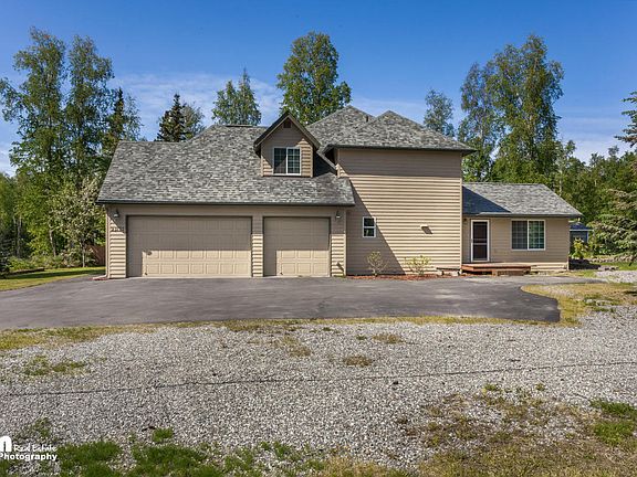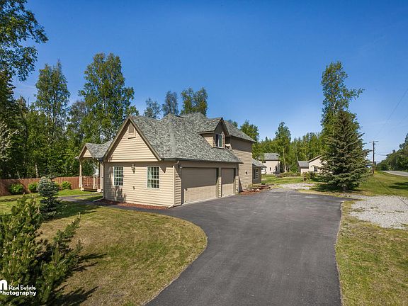 Gorgeous Chugiak home on large corner lot in a great commute location! Updated kitchen, new appliances, and new carpet. Master suite on the first floor. This home is in impeccable condition and is extremely clean. The 3 car garage is spotless! Property boasts a mature apple tree, raspberry patches, green house, tons of extra parking, and best of all: a detached shop with a bonus room totaling over 1,100 sq. ft!