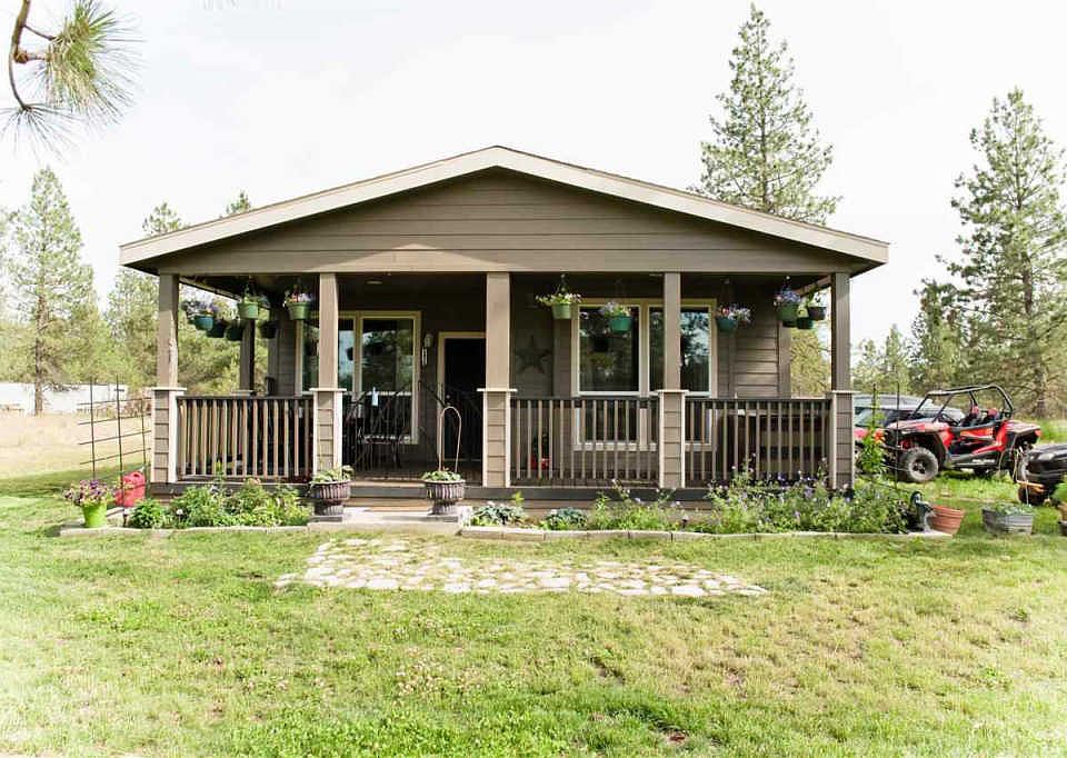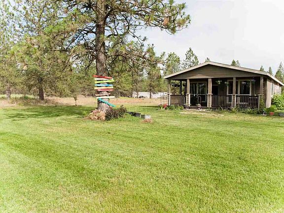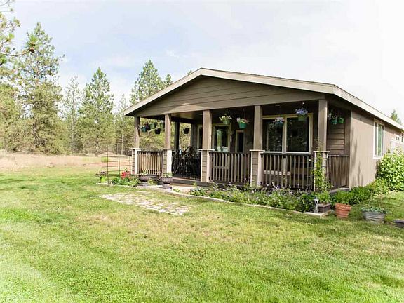 Beautiful Newer Manufactured home on 31 acres! This 3 bed 2 bath home has an open floor plan and plenty of storage space. Large master bedroom with master bath. Inviting covered front porch offers a nice space to enjoy your property and entertain guests. Nice front yard, pond, trees and pasture all on the property. Property is two parcels, both have power and septic. Short 30 minutes from down town Spokane. This quiet property has it all!