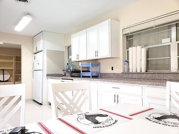 Single family home located in the favored Boca Raton neighborhood of Sandalfoot Cove. NO HOA. This home features a large master suite with a walk in closet. The kitchen has been upgraded with white wooden cabinets and granite counter tops and there is 32 inch porcelain tile throughout the whole home. Forget about popcorn ceilings, the ceiling have been changed to new textured ceiling. There are accordion shutters on the windows. At the back of the home, there is a covered patio and a nice spacious, fenced back yard. Don't miss out on this fantastic home that can be used as a investment property and/or for personal use. Fantastic school zone and the turnpike is just a few minutes away.