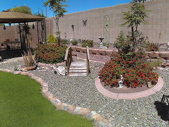 Amazing single level home in the community of Sundance in Buckeye! Custom painted cabinets, new kitchen backsplash, new garbage disposal & kitchen faucet. Air conditioner, heat pump, extra air return in master, water heater, attic insulation, & window coverings all just 2 years old - done in 2018. Backyard equipped with pavers, turf, fire pit, gazebo, & drip irrigation for the desert landscaping. Less than a block away from grocery stores & lots of dining options. Pot shelves in living room, master, & hallway. Built in office space in hallway with custom painted cabinets. Come see it today!