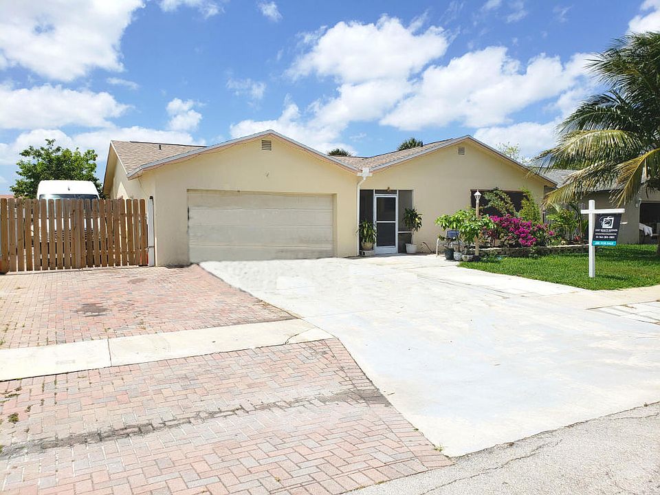 Come see this spacious, single family home located in the well-known, desirable Sandalfoot Cove. NO HOA. This home has a tremendous amount of potential. Currently, there are 3 bedrooms/2 baths and an additional area in the back that can be built into a fourth bedroom. The home also has an additional outdoor kitchen in the covered patio. You can easily park eleven cars at this property. Two car garage, 8 car drive way, and a additional private, fenced area where you can park another vehicle, a 25' boat, or even a 30' RV or trailer . There is tile throughout the whole home, crown molding in the living area/kitchen/bathroom, granite counters and wooden cabinets in the kitchen.