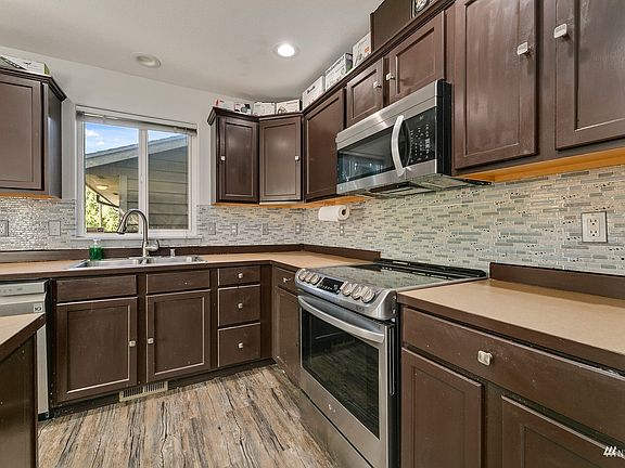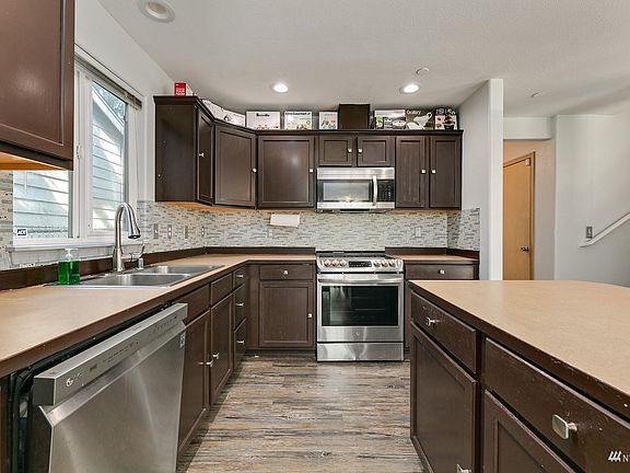 NEW PRICE! Well-maintained home located in S. Everett (next to Mukilteo). Location, Location, Location! Easy Access to 525,Boeing,Paine field,I-5,shopping & restaurants, this is the one you have been waiting for! Formal Living room greets as you enter, the first floor consists of powder room for guests,great room concept,family room w/gas fireplace open to kitchen w/island and SS appliances (induction stove top), dining area off kitchen w/access to fully fenced, deck/patio w/partially covered outdoor living space, great for all seasons. Attached, spacious, 2 car garage w/tons of storage complete the lower level. Upstairs your primary bedroom w/vaulted ceiling, full bath & walk in closet, 3 bedrooms, second full bathroom, and laundry.No HOA!