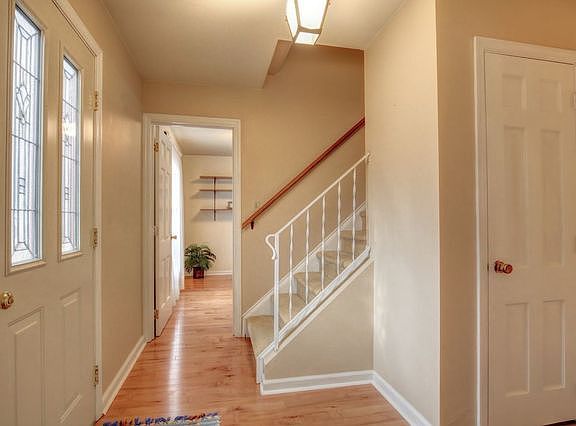 All spruced up and ready to go - This "well-cared for" two story is sure to please! Beautiful ash wood floors run throughout most of the first story. Spacious Living room w/ fireplace, easily holds lots of furniture, and opens to formal dining room. Well-planned Kitchen has updated cabinetry - Corian countertops, plus breakfast area. Well-lit Family room overlooks a beautifully planted back yard, and opens to a sprawling deck area, complete with pergola. First floor Den has desk area plus plenty of bookshelves. Master suite easily holds a king sized bed, adjoins a custom designed walk-in closet plus a private bath. Three additional bedrooms plus a nicely sized bath complete the second story. Two car garage, plus additional storage areas, laundry room - washer/dryer stay, and more. A "MUST SEE" HOME!