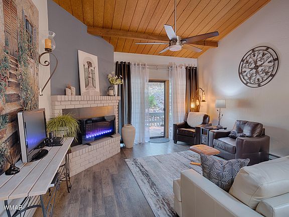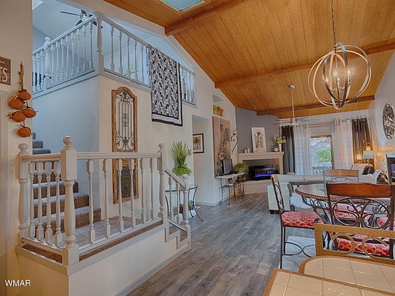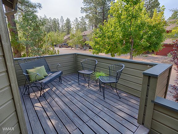 View of Pine Lake from your front deck! Enjoy this updated townhouse in the heart of Pinetop, AZ. Off the beaten path but near everything you need and want. Townhouse is 1207 sf and features an open floor plan with vaulted wood ceilings. Lovely back covered patio and landscaped for relaxation. Downstairs you'll find the master bedroom and bathroom plus a half bath in the laundry room. Loft upstairs can be anything you want. One car attached garage with easy access into the home. Being sold furnished. HOA is $165 per month.