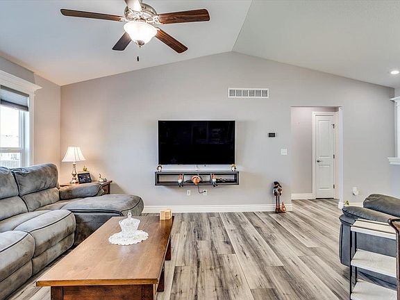 Welcome to this move-in-ready home that was built in 2020, boasting custom details, numerous upgrades, and a thoughtful layout. With 4 bedrooms—3 on the upper level and 1 in the basement—this home offers ample space for family and guests. The large master suite provides a private retreat, and the additional upstairs bedrooms, including one with a charming window seat, make for versatile living spaces. The kitchen is a chef’s dream, featuring a gas stove and vent goes to outside, a peninsula island with generous storage, a refrigerator that stays with the home, and a larger walk in pantry. The main level includes a separate laundry room, complete with washer and dryer that stay with the home, and a practical drop zone off the garage for easy organization. Downstairs, you’ll find a spacious family/rec room with an impressive wet bar, mini bar fridge that stays, and lots of room to spread out and entertain if you wish. You’ll love the large storage room too! Enjoy the peace of mind provided by the included security system and cameras that stay with the home. Outdoor living is enhanced with a screened-in deck and a fully fenced yard, perfect for relaxation. The oversized, fully insulated 3-car garage comes equipped with a mini split system for heating and cooling, plus included cabinets and a workbench, making it a versatile workspace. The home also features an upgraded, high-efficiency HVAC system (96% efficiency, 16 SEER, 2-stage variable) and is generator ready. There is a water softener that stays as well. Roof is class 4 for additional savings. A shed with shelves and a workbench in the backyard offers extra storage and functionality. Notice all the additional concrete around the house which you will appreciate! Located in the desirable Goddard School District, this home has been meticulously cared for and offers quality, comfort, and move in ready convenience at every turn! Buyer responsible to verify schools and any other information deemed important to buyer. Information deemed reliable but not guaranteed and may change without notice.