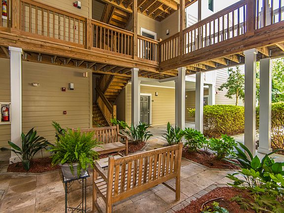 Rarely available One Story Condo on First Floor with 1 CAR DETACHED GARAGE. Very spacious! Large Kitchen opens to Living Room - Dining Room, and has a long Breakfast Bar and a tile backsplash! Nice laminate floors in Living areas, tile in Kitchen and Bath and newer carpet in Bedroom. Big Bathroom with lots of storage and garden tub. Nice sized walk in closet in bedroom. There is a pretty archway in the hallway. Lots of storage space inside and off the cute screened porch. Stainless steel dishwasher was replaced in 2015. Ceiling fan in Living Room has a remote and dimmer for lights. You can't beat this location! Close to St Frances Hospital, Shopping, High School, Restaurants and I526. Not far to Downtown Charleston. This is a gated community with nice amenities - pool, clubhouse, grill, fireplace, dog park and doggie doo stations. Windows in neighborhood recently replaced plus extra exterior work in progress - great HOA! Access to the one car garage under the breezeway and very close by. HOA allows parking in front of garage plus there is plenty of parking around the grounds. ---------- DISCLOSED: [1] Square footage is approximate, buyer should verify to buyer's satisfaction. [2] Since school attendance zones are subject to change, buyer should verify by contacting the school system.