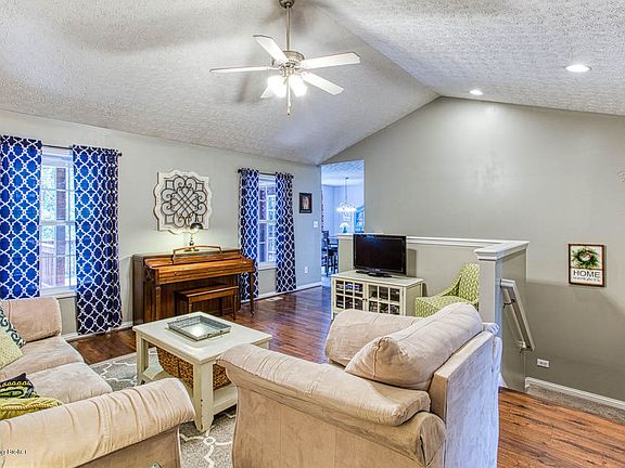 NEW PRICE! Beautiful 3 BR 3 BA Ranch with Finished Walkout Basement in Oldham County's Majestic Woods neighborhood. Private, fenced back yard that backs up to neighborhood green space. Open Floor plan with a vaulted ceiling great room. The eat-in kitchen offers plenty of counter space, and a breakgast bar. Appliances remain, new stove and microwave. Covered deck access off the dining area. Large master suite with private bath, featuring a double vanity and walk in closet. There are two additional bedrooms on the main level and a full bath. The finished walkout basement features an oversized family room with custom woodwork, a full bath, mudroom, two storage areas and two additional rooms that could be used for 4th & 5th non conforming bedrooms, office, or workout room. 1 YR Home Warranty