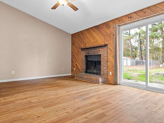 This charming two bedrooms, one and a half bathroom home is conveniently located close to Camp Lejeune and area beaches. The home is out of the city limits and without HOA restrictions! This home features a split floor plan providing privacy for each bedroom. The living room features a wood burning fireplace with a wood accent wall and vaulted ceiling! This adorable home includes a nice backyard with a patio and attached storage room! The seller is offering $2,000 use-as-you-choose allowance!