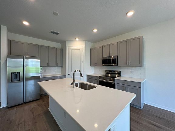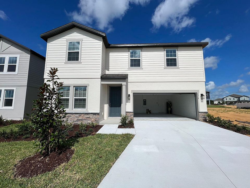 Gorgeous brand new home located in the highly desirable Champions Gate area. The home has plenty of upgrades such as beautiful 42 inch gray mist kitchen cabinets, stainless steel appliances including stove, dishwasher, and microwave. Large island with Quartz counter-top perfect for gatherings that is open to the great room and dining area. Main living space features wood look luxury vinyl plank flooring and bedrooms with upgraded carpet for comfort. Enjoy the amenities with a swim in the community pool, fitness center, tennis courts, playground and beach volleyball court. This home is conveniently located to shopping, grocery stores, Posner Park, Champions Gate Village and Walt Disney World.