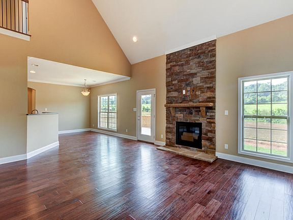 Elegant home has luxurious master suite, spacious great room, cathedral ceilings, and formal dining room on the main floor. The large kitchen features granite countertops, island, and 42-inch premium cabinets. The master suite offers a spacious bedroom with spa-like bathroom with tile shower with glass enclosure, whirlpool tub, and double vanities. This plan has two additional bedrooms and large bonus room upstairs.