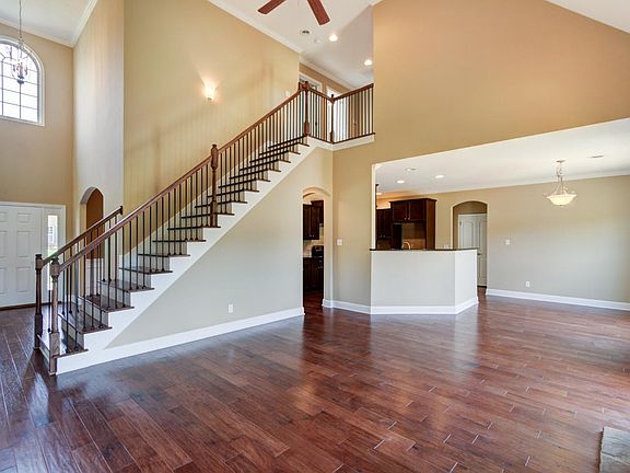 Elegant home has luxurious master suite, spacious great room, cathedral ceilings, and formal dining room on the main floor. The large kitchen features granite countertops, island, and 42-inch premium cabinets. The master suite offers a spacious bedroom with spa-like bathroom with tile shower with glass enclosure, whirlpool tub, and double vanities. This plan has two additional bedrooms and large bonus room upstairs.