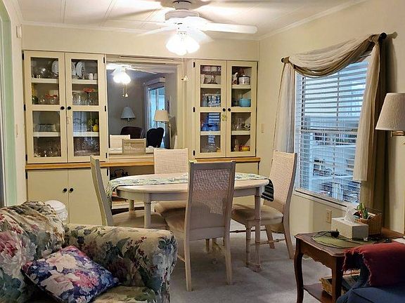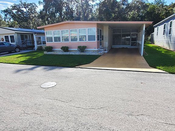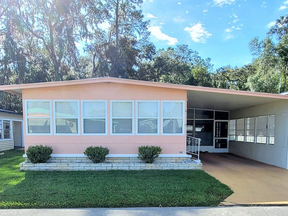 Warm and Inviting will be your first impression! This double wide home offers 2 bedrooms, 2 bathrooms, 2 sunrooms (one with vinyl windows and one with glass) and a gorgeous lot with no rear neighbors! There is a long driveway for plenty of parking and a deep carport that allows two cars under cover. Everything in this home is neat and tidy - completely move in ready. All furniture, decor, linens, dishes and appliances will remain with the purchase. Only sellers personal items will be removed. This home features replacement windows and seven ceiling fans throughout. There is a small patio in back with nothing behind the home but woods. Everything in home is in great condition and ready for new owner to move right in. If you are looking for a great home that is priced to sell schedule an appointment to see this one. Located north of the Tampa/Clearwater/St. Petersburg metro area, Clover Leaf Farms is a 55+ retirement mobile home community that is big on amenities. Offering two spacious clubhouses, billiards, shuffleboard courts, pickle ball and catch/release fishing you won't be bored here. There is also a dry sauna, indoor heated swimming pool, and a whirlpool-spa-hot tub as well as a large heated outdoor pool and new fitness center being built. This Brooksville, FL mobile home neighborhood will never leave you wanting. Clover Leaf Farms also provides its residents with a pet friendly environment that includes RV storage, a scenic picnic area, and on-site management. With so much to offer, you can't go wrong when you choose to live at Clover Leaf Farms. Monthly fee is $676 and includes water, sewer, trash pick up 2x per week and lawncare.