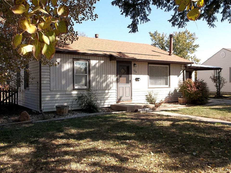 This is a 2 bedroom, 1 bath ranch home on 800 sq. ft., in central Loveland. It has a wood stove, hardwood floors, a laundry room, large fenced back yard with covered patio and a shed for tenant use, and 1-car attached garage with extra storage. Appliances include refrigerator, gas range, disposal, and washer/dryer connections. Students and smoking are not permitted. A pet is allowed, two maximum, $300 deposit per pet, half nonrefundable; dog breed restrictions apply. Tenant pays all utilities. Available now for $1295/mo., lease to June 30, 2020 renewable. The major cross streets are N. Cleveland and E. 23rd.