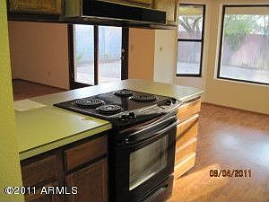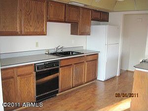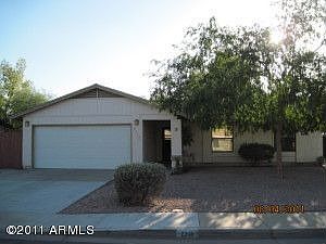 Cute 3 bed 1.75 bath home with laminate floors and newer carpet. Recently re-painted a neutral color. Ceiling fans in all bedrooms and great room. Kitchen and dining area are spacious and open to the great room which has a wood-burning fireplace for those cool Arizona evenings. Master bedroom has a walk-in closet and master bath includes a newer vanity with granite top and newer tile. Secondary bedrooms boast mirrored closet doors. Spacious 2 car garage includes opener, cabinets, and side entry door. Large backyard has plenty or room for a pool!