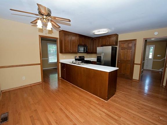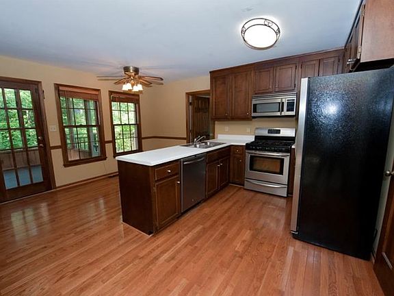 Beautiful 2-story traditional home with basement, w/wooded rear lot. 4 bedrm, 2.5 bths, w/ample closet space. The kitchen features wood stained cabinets with laminate countertops, stainless steel appliances, built-in microwave, gas range/stove, and breakfast bar. Wood paneled den w/fireplace. Exterior door leads to screened-in porch and deck. Wood flrs throughout the 1st level of the home along with crown molding and clean paint. The basement features a 2-car garage and a bonus/recreation/workshop area. Driveway and backyard are sloped.