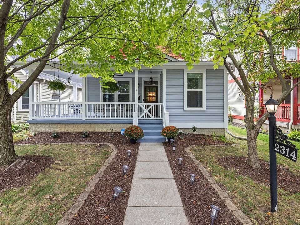Perfectly situated in the heart of Fall Creek Place, this stunning home offers the ideal blend of charm and modern comfort! Just north of Craig Kids Memorial Park and steps from beloved local favorites like Bocca, Loco, Baby's, Tea's Me, Gather 22, Mashcraft, and Goose The Market - you'll love living in one of Indy's most convenient and vibrant neighborhoods. A wraparound covered front porch with swing invites you to relax and take in the scenic tree-lined street. Inside, a welcoming living room features vaulted ceilings, warm wood laminate floors, and a cozy fireplace - creating the perfect space to unwind or gather with friends. The tastefully updated kitchen shines with tall white cabinetry, granite counters, custom tile backsplash, and stainless steel appliances. A large breakfast bar opens to the sun-filled dining area, where French doors lead to a covered back deck. The rare main-level primary suite sits privately at the back of the home, offering a walk-in closet and an ensuite bath with a spacious walk-in shower. Two additional bedrooms and a second full bath complete the main floor. Downstairs, prepare to be impressed by the fully finished basement which doubles your living space! With 9-foot ceilings, egress windows, and quality finishes, it feels more like a separate condo than a lower level. Enjoy a spacious family room, game area with wet bar, and a fourth bedroom with nearby full bath - a perfect setup for guests, a home office, or multi-generational living. You'll also find a fitness/bonus room behind French doors and an oversized laundry/storage area. Out back, a fully fenced yard with covered deck and paver patio is surrounded by mature landscaping - creating a private retreat. A two-car detached garage and storage shed complete this move-in-ready gem.