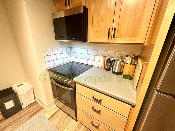 This private, quiet studio apartment has been recently renovated and features: * Kitchen with an electric range, dishwasher and microwave. * Updated stainless steel appliances * Easy-to-clean flooring * Washer and dryer in the unit, for your use * Private outdoor patio, fenced with gate Great location! Right in the heart of the lively Kerns neighborhood, with easy access to some of the city's best food, drink, and entertainment. Walking score of 94 out of 100! Stroll a block to Screen Door for legendary Southern-style brunch, or pop into Paadee for creative Thai dishes. Close to Voodoo Doughnuts, Guero, Crema Coffee and Bakery, Ken's Artisan Pizza and Baby Doll Pizza. Just down the street, Oregon Park offers green space for a picnic or a game of frisbee, while a short walk west takes you to the bustling Burnside corridor with boutique shops, coffee roasters, and local breweries like Migration Brewing. If you're in the mood to wander, the quirky shops and vintage stores of East Burnside and NE 28th Ave are just steps away. Utilities: Owner pays for garbage service. Tenants will be billed back for their fair share of all other utilities. Tenants are welcome to select and pay for the Internet service of their choice. Pet policy: Sorry, no pets. However, if you want all the furniture to be removed, the owner may consider allowing pets. Lease Length: At least 6 months, up to a year. Renewable if rent is paid on time. Note: This unit comes fully furnished. But if you want any of the furniture to be removed so you can bring in your own, just let us know and we will have items removed and stored to make room. No smoking on the premises. This property is managed by Green Keys Property Management LLC. We are looking for applicants who can start a lease sooner rather than later. Application fee: $45 per adult Applications will not be considered complete until the online application has been filled out completely and the application fee has been received. Screening criteria: Minimum credit score of 650; minimum monthly income of 2.5 x rent. Next Steps: 1. Find the address 2314 NE Couch. 2. To see it in person, contact us via email, text, or phone. 3. If you like the unit, apply online. Move in costs = first month's rent plus security deposit.