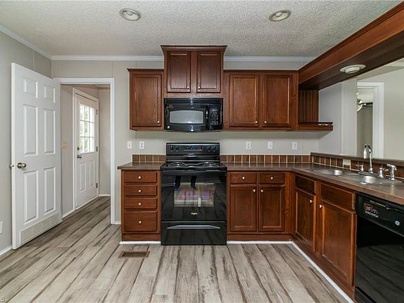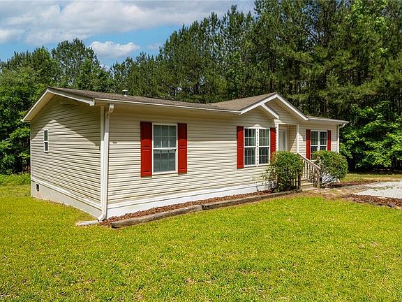 Welcome home to peace, privacy, and the charm of country living! This beautifully updated 3-bedroom, 2-bath manufactured ranch-style home sits on 1 acre with a long gravel driveway and wooded backdrop that offers both seclusion and serenity. Inside, you’ll find new LVP flooring, fresh paint, and a neutral color palette that’s ready for your personal touch. The spacious living room opens to a pass-through kitchen bar, making it easy to entertain or just keep an eye on everything going on. The kitchen features dark wood cabinetry, black appliances, and plenty of counter space. The primary suite includes a large soaking tub with rock surround, separate shower, and double vanity sinks. The split floor plan keeps the other two bedrooms and full bath privately situated across the home. Out back, enjoy peaceful mornings on your wooden deck overlooking a wooded yard and cleared open space perfect for play, pets, or gardening. There’s also a metal storage building for tools and equipment.