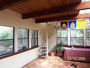 Incredible location near Lake Austin and surrounded by high-end homes this secluded cabin is ready for renovations. Very private lot is covered in oak trees and includes a wet weather creek. Home has wood beamed ceilings, saltillo tiled floors, high ceilings and exposed duct work. Great loft with walls of windows and views. Plenty of room for expansion with estate type setting, detached workshop, large deck, greenhouse. Great artist or musician hideaway with tons of potential!!Very rare find in this area.