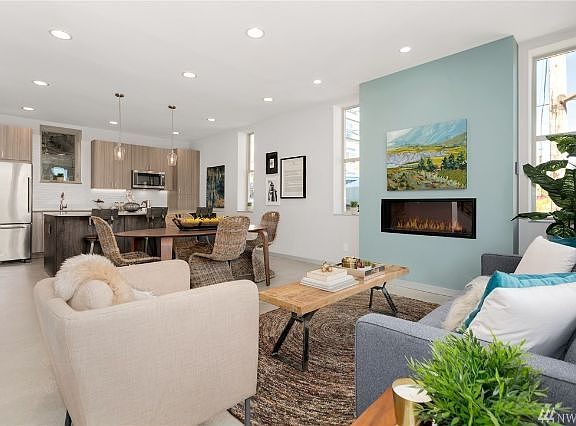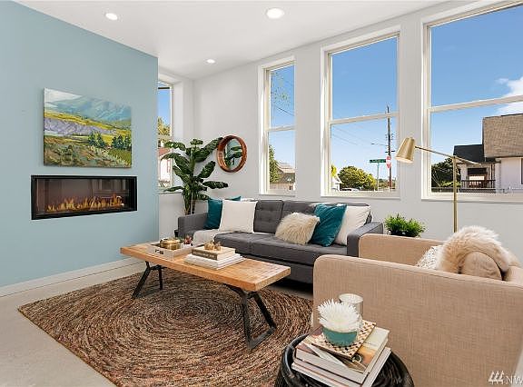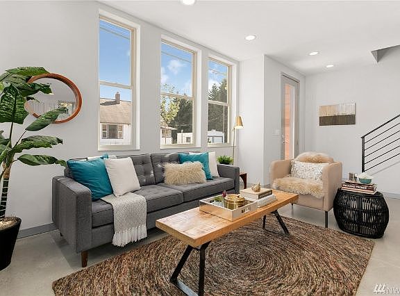 Last home left! You will be amazed at these homes. Wide, roomy & bright living spaces. Open main floor plan w/ concrete flrs, quartz cntrs, island kitchen, sun drenced living rm. Huge master: en-suite, walk-in closet, deck & Mt Rainier views. Bedrooms larger than many masters. Details: stairway lighting, hardwood flrs/stairs/master bd, heated flr baths, AC & baths wired for bidet. Ease to Downtown, the Hospitals, Bellevue, UW & New Light Rail. Amazing roof views. 4-Star Green. Off-Street pkg.