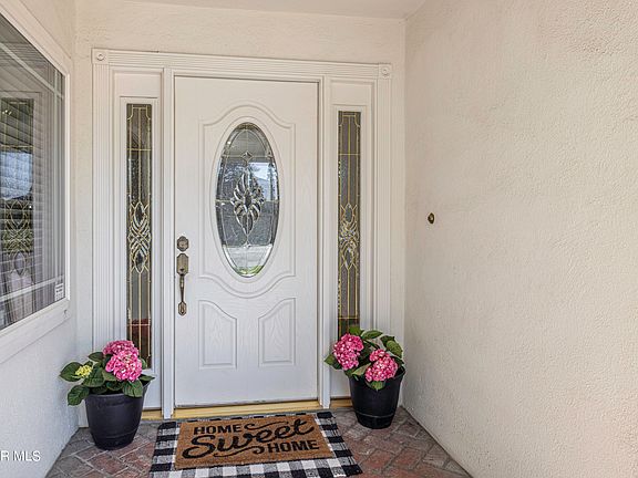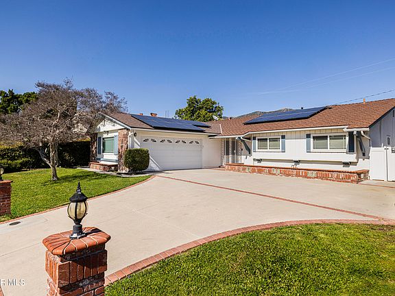 Welcome to this charming 4 bedroom, 2 1/2 bath, single story pool home located in a desirable area in East Simi Valley. Enter your new home through an inviting brick entryway. The large front door is accommodated by two side windows allowing light to flood in. You will love this flexible floorplan with family room that leads to the updated kitchen featuring white soft close cabinets and drawers, quartz countertops, stainless steel appliances, and a breakfast nook area.