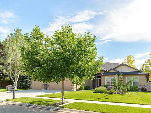 HUGE PRICE DROP! Reduced $35,100 ~ Truly better than new! Lovely front door & tiled entry welcome you to this custom built home. Split bedroom floor plan, gorgeous hardwood floors, 9 foot ceilings, granite & tile, and custom drapery throughout. Kitchen features built in Bosch appliances, beautiful cabinetry with soft-close drawers, open to eating space & great room with stone fireplace, large windows w/ custom blinds and access to east facing covered patio. Master suite is roomy with a huge walk-in/roll-in shower, extra long soaker tub and walk-in closet. Dual vanities separated by appliance cabinet with outlets. 4th bedroom could be an office or den space. Mature landscape with concrete curbing and large 3 car garage with epoxy floors. What is not to love about this outstanding property?