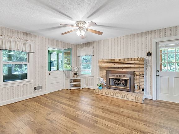 This brick ranch on over 5 acres is situated in a perfect location for planting your own garden, raising farm animals, or just plenty of space all your own. If you want to get away from it all but still have restaurants and grocery stores nearby, this is your place. One story ranch with a finished basement and lots of outdoor areas. The main floor has three bedrooms and a living room/dining room combo, kitchen, den with fireplace, closet laundry, one full bath plus one-half bath. The basement has a huge room with a walkout to large, covered patio and woodstove fireplace. The basement also has a washer and dryer for laundry ability on either level of the home. A huge screened back porch and rocking chair style front porch. Grocery store less than 10 miles. Restaurants in Pickens only 6 miles away.