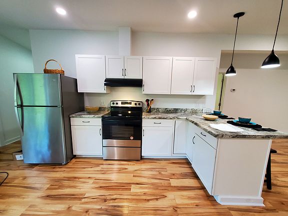 3 bedroom, 2 bathroom newly renovated property. The eat-in kitchen has all new appliances with plenty of storage and counter space including seating. There is hardwood flooring throughout the living space including the main bedroom. The 2 remaining bedrooms are carpeted with new carpet. Both bathrooms, the main and guest bath have vinyl tile, the main bath has a walk-in shower, a large vanity with plenty of storage and a linen closet. The guest bath has a large soaker tub, shower combo. The main bedroom has a walk-in closet with shelving. There are two ceiling fans, one in the living area and one in the main bedroom. There is a laundry room located off the kitchen with available hook-ups for an electric washer and dryer. There are two decks ,one at the front of the property and one located off the kitchen area. This property has a large partially fenced yard with room to garden as well as two large planters at the front of the home. This home is cooled by central air and heated with an electric heat pump. All potential renters are subject to a credit and back round check. There is a non refundable application fee of 60$ to cover these costs. If selected you will be required to pay the first months and a security deposit at the time of signing the lease. The lease is for a period of one year. The tenant is responsible for all utilities associated with the property and must be in their name. The tenant must also purchase renters insurance. Absolutely no pets of any kind.