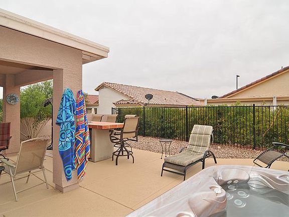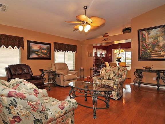 This is a MUST see home! Absolutely beautiful 2 bedroom and an office/den with a wonderful granite kitchen is ready for your immediate purchase. When you enter the home you enter into the spacious and elegant great room, with vaulted ceilings and gorgeous wood floors, they are the real deal, no Pergo here! There are hi-end ceiling fans throughout the home. The kitchen features granite counter tops, tile backsplash and upgraded cabinets. Exit through the acadia door to the fabulous backyard ready for entertaining year round with a built in BBQ, upgraded cool decking and above ground spa! This home is feature packed. Don't miss this opportunity in this Active Adult community! Interested in a turnkey solution, just want to bring your clothes? The furnishings are available by separate sale.