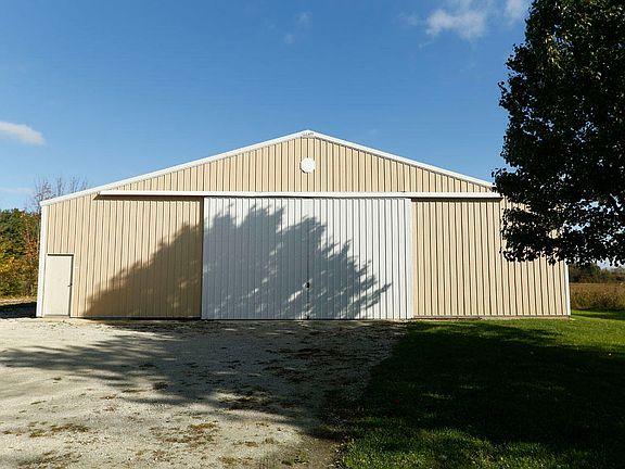 See drone video in photo tab. Built in 1979, beautiful custom 2,500 sq. ft maintenance free all brick house has 4 BRs w/ full closets. 2 1/2 BAs, Main flr laundry, fresh paint, ADT security system & wired intercom, and a 200 amp electric service and whole house surge protector. Built with car enthusiast in mind or to be used as a Hobby Farm. GR features a Hearthstone woodstove. There are oak hardwood floors, trim and cabinets, ceiling fans throughout most of the house, new carpet in living room, and new vinyl flooring in KIT & BA. This house has an insulated 3+ car garage with a ceiling mounted I-beam hoist designed to lower engines, tools, or equipment directly into basement. This property includes a 60' x 72' steel building and a 32' x 48' det. garage w/ furnace & air conditioning.