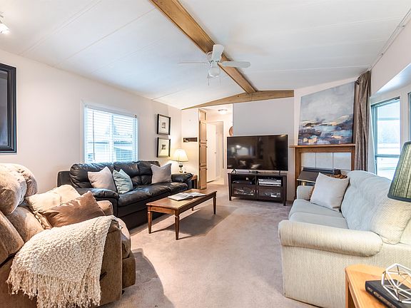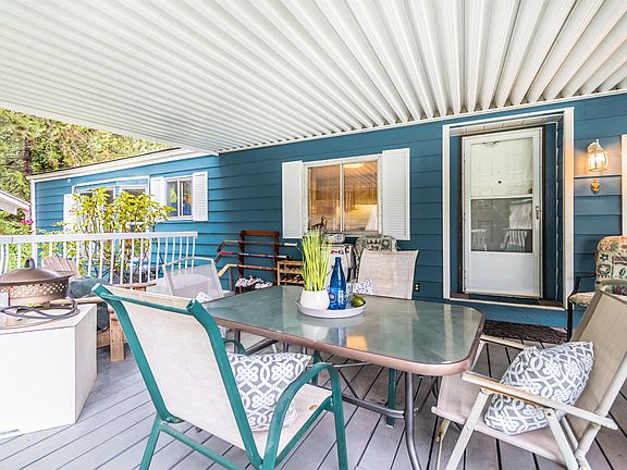 Welcome to Deer Creek Estates! This beautiful 2 Bdrm/2 full Bthrm home is situated on quiet cul-de-sac with large side yard and tree lined behind for max privacy. Large country kitchen with room for dining table and loads of cupboards with pantry. Living room has natural gas fireplace to keep you cozy and warm. Bdrms are on opposite ends of the home (Master Bdrm/large ensuite at the back & 2nd Bdrm or Office/main Bthrm at the front). Huge covered Sundeck for year round BBQ'ing & Single Carport. Storage Shed (8' x 7'). Furnace and Roof 2016. One of the best parks around with Clubhouse. Affordable $752 PAD rental per month. Adult community 45+ with dependents 17+ & one small pet 12lbs or 14" welcome. Walk to Fern Ridge Shops. IGA, & Transit.