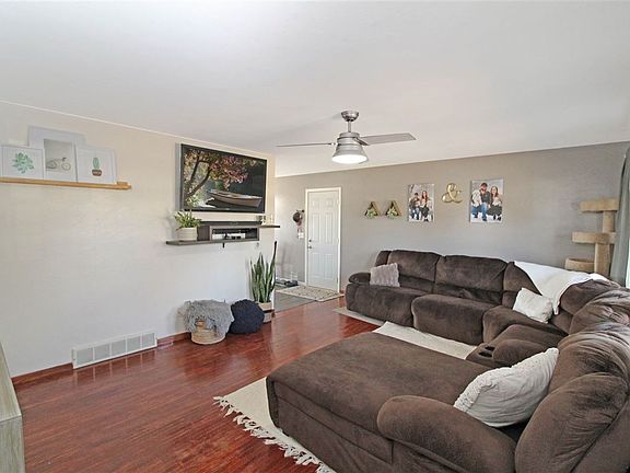 Have you been searching for the perfect move in ready home? Look no further! This 3+ bedroom, 2 bath home has everything you are looking for! Once you enter you will be pleasantly surprised with the large living room featuring refinished hardwood flooring, and a large picture window allowing in natural light. Right off of the living room you will find the kitchen complete with a 4 piece stainless steel appliance set and vinyl plank flooring. Off the kitchen is the perfect spot for your dining room table and access to outside from the patio door. Wander down the hall and you will find three nice sized bedrooms all featuring refinished hardwood flooring and updated paint. Completing the main floor is the full bath. Heading downstairs you will be amazed with how SPACIOUS the family room is! This space allows for multiple furniture arrangements, a movie room, man cave or diva den, you name it - there is room for it! There is an additional space for a craft area, card or pub area...the options are endless! The basement is finished off with a non-egress bedroom, large storage room, 3/4 bath with laundry. Sound like the house for you? Let's talk about outside! The garage is finished with a gas heater and a workspace area. The driveway has had extra concrete added to allow for two more parking spots. The fenced backyard is perfect for entertaining! The concrete patio area will fit your patio furniture under the pergola for those nice summer nights - Bonus is the patio has easy access to the kitchen for grillin' and chillin'! There are mature trees in the backyard to give you privacy along with a shed for additional storage. The seller has taken great pride in this home and made many smart updates along with replacing the sewer line in 2018. Don't let this one pass you by!