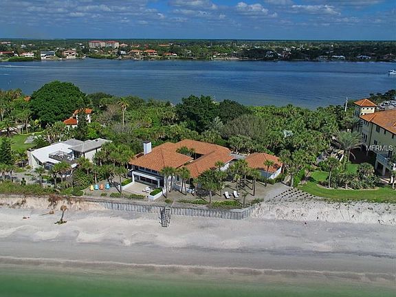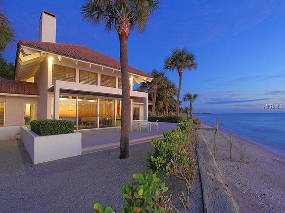 This home is a spectacular and unique Mid Century Modern, Sarasota School of Architecture residence. Originally designed by celebrated architect Tim Siebert, it was extensively remodeled in 2004, being faithful and sensitive to preserve the authenticity of the original design. The home is perfectly situated to take advantage of the classic Casey Key gulf to bay setting with 150' frontage on both the gulf and Sarasota Bay. This relaxing 3 bedroom 4 bathroom estate enjoys gated privacy, sizable windows throughout the home to take advantage of the views, a wood-burning fireplace, and the central courtyard and pool add to the distinctive beauty of the home. Currently there is a 4th room used as an office that could be converted to a 4th bedroom. The more than 1.25 acre property has a retaining wall along the beach with a stair down to the sand, a boat dock and lift on the Bay side of the property, and the current owners have created a tranquil environment with lush tropical landscaping. The home has an attached oversized air-conditioned two car garage. Casey Key is an 8 mile island with less than 400 single family homes, no traffic lights and no high rise condominium buildings. It is remote in feeling, yet well-located between the bustling activity on Siesta Key and the town of Venice.