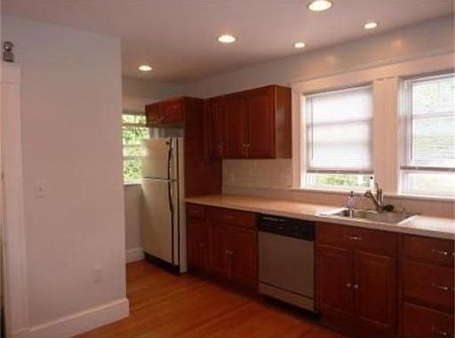 Simply the best. 2nd floor apartment 2 and 1/2 bedrooms. This is what you were looking for.2009 updated kitchen with stainless steel appliances, new kitchen cabinets, updated bathroom, all hardwood floors, fresh painted, open floor kitchen with dinning room, front and back porches, washer and dryer in the basement, plus extra storage. All new windows and all systems have been upgraded. 2 tandem assigned parking. On the bus line and 10 minutes far from Commuter Rail T station. Wont last long.