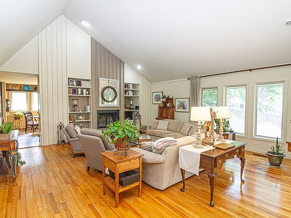 - Bookcases, Built-in Features, Ceiling Fan(s), Cathedral Ceiling(s), Fireplace, Granite Counters, Laminate Countertop, Bath in Primary Bedroom, Main Level Primary, Pull Down Attic Stairs, Smooth Ceilings, Tub Shower, Cable TV, Walk-In Closet(s), Window Treatments, Breakfast Area