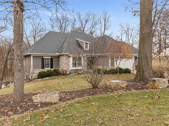 This is a beautiful zero entry home. The high quality workmanship is evident as soon as you enter. The hand scraped hickory floors on the main level always draw admiring comments. The tiled all season sunroom is a wonderful place to gather for your morning coffee or evening games. A grilling deck is also accessible through the sunroom. The 4th bedroom is currently being used as a den but would make a great guest room. The lower level finish is the same high quality as the rest of the home and includes a wet bar and wine cellar. Enjoy your privacy on a 3/4 acre wooded lot when you walk-out to a large patio with a water feature and a fire pit beyond. Approximately 500 sq. feet of partially finished basement with natural lighting would make a perfect craft, office or play room. Don't miss out on this captivating home.