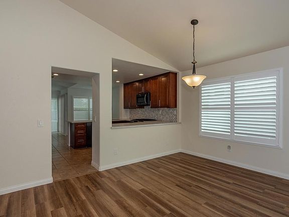 Welcome to this beautiful, single-story, turn-key home with an abundance of upgrades and meticulous attention to detail that sets this residence apart. The remodeled kitchen boasts luxurious quartz countertops, gorgeous cabinets, stainless steel appliances and a stylish tile backsplash. The low maintenance laminate and tile flooring throughout adds a touch of elegance while ensuring durability and ease of care. The plantation shutters throughout the home offer both privacy and a touch of classic charm. The living room features a cozy fireplace, creating the perfect ambiance for relaxation and entertaining. Both bathrooms have been remodeled with new cabinets, quartz countertops and tile showers. The skylight in the primary bath adds natural illumination. There is a formal dining area in the living room and an informal area in the family room. Outside you will find a brick patio surrounded by artificial turf and a great patio cover. The garage is especially neat with an epoxy floor and loads of storage cabinets. This home is the epitome of turn-key living, offering a perfect blend of functionality, style, and comfort.