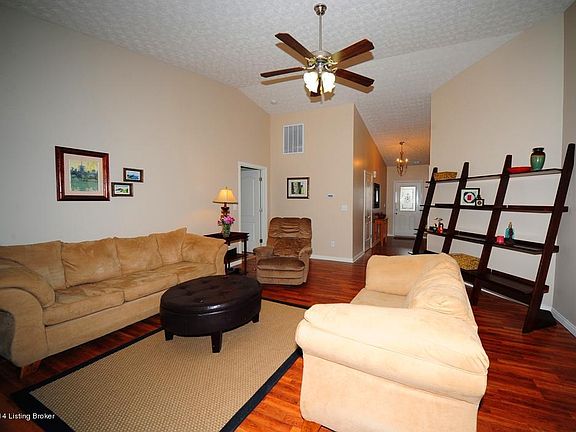 Wonderful ranch home in Oldham County! This open floor plan makes entertaining so easy. As you enter the home you will notice to the left are the two bedrooms and hall bath. To the right you will notice the laundry room/mud room and garage entry. Straight ahead is the large great room with vaulted ceiling. This opens into the generously sized eat in kitchen which has beautiful cherry cabinets and plenty of room for workers and visitors. You can access the large fenced back yard through the kitchen which is perfect when grilling. Also, just off the great room is the spacious master suite which has a large walk-in closet. The other two bedrooms have wonderful space with large closets. This has been an adored home and will be missed. Hurry!