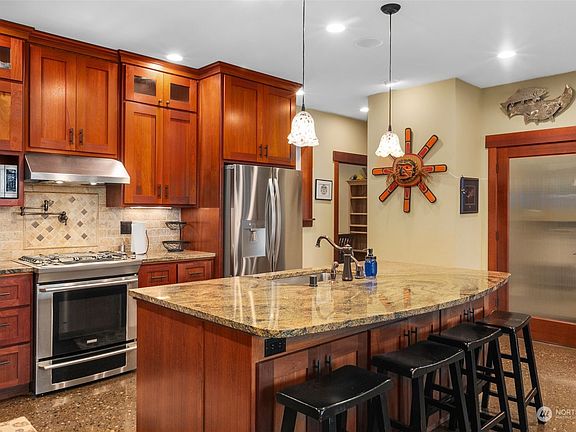 Custom LUXURY Waterfront Lake Ki Home w/ 50' Deepwater Dock and Beach on .6 Acre, w/ Shop! This home is Immaculate, and Loaded with unmatched Architectural Design Details. Radiant concrete flooring w/ efficient GeoThermal heating & cooling. Gourmet Kitchen with slab tops +custom cabinetry. Vaulted ceilings. Primary Suite is breathtaking, private laundry, soaking tub, 3 head walk-in shower, private deck to enjoy your lakefront retreat. Large guest rooms, 4 bathrooms, 2 fireplaces, theater-room wired, storage & view deck overlooking your manicured yard w/ sprinklers. Professional, heated/powered wood shop, plus full garage for large vehicles. Far too many details to list; First Time On Market. Boating, fishing, swimming and paddling!