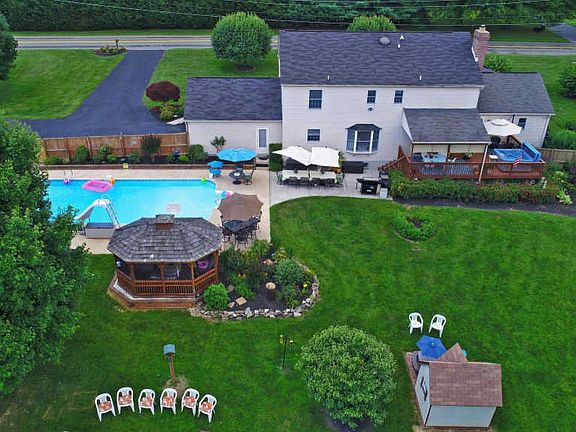 OPEN HOUSE SATURDAY 5/18 from 12-2. BEAUTIFUL Home with everything you could want and more. 2 houses for the price of 1. Main house features 4 full bedrooms and 2.5 baths with finished basement. Main floor features hard surface flooring throughout, brick fireplace, updated kitchen with access to covered deck overlooking in ground pool and 2 acres of yard. Upper level feautres 4 generous sized bedrooms with master suite including walk in closet and updated bathroom with his/her vanites, jetted tub and separate shower. Huge in law addition with its own entrance features living space, full bedroom with attached handicap accessible bath, galley kitchen and laundry.