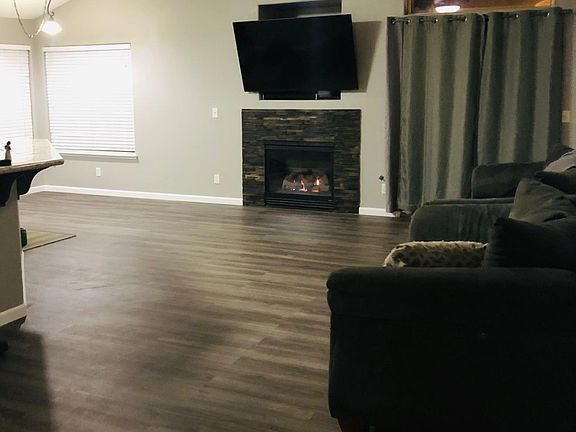 Cozy but open floor plan. The large living room has a fireplace, ceiling fan and slider out to the back yard. The dining area is open to the living room and kitchen. It has lots of windows to bring in the morning sun. The kitchen has tile floors, new granite counter tops and a convenient breakfast bar. The bedrooms are room with ample closet space. Other amenities include a 2 car attached garage, central heating and air conditioning, laundry room, a huge back yard with synthetic grass, professional landscape and a cute court yard in front. Brand new luxury plank flooring and baseboards through out.