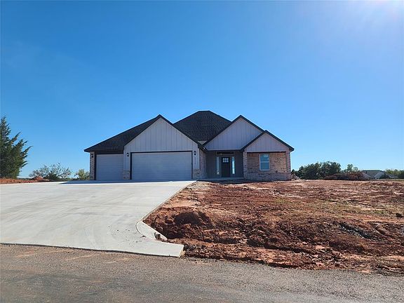 This New-Construction home in Blanchard sits in a great location on a little over an acre lot! Only a few minutes from Kilpatrick Turnpike. Cozy 3 bed 2 bath floor plan open concept living area with kitchen including a spacious center island with breakfast bar. Primary suite with huge walk-in closet and double vanities. This home is also complete with an in home study. Covered front porch and back patio!