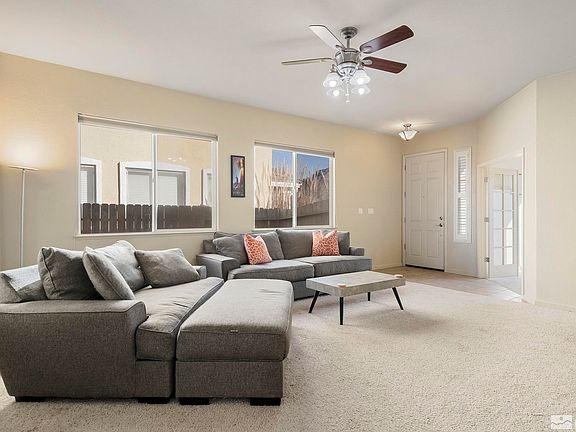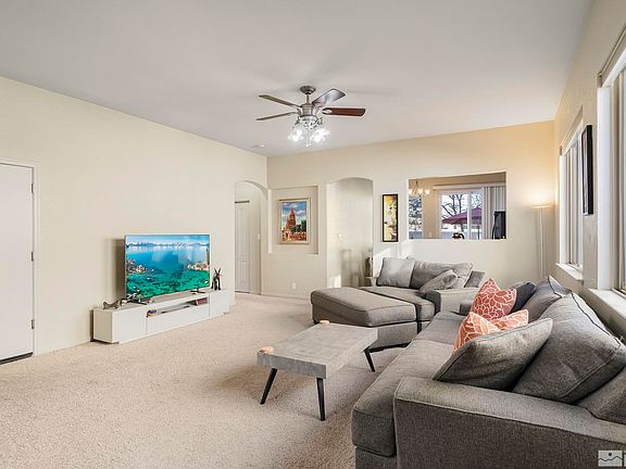 Welcome to this truly turn-key, single story home that is awaiting its next owner. Step into the spacious living room that is perfect for entertaining or relaxing with loved ones. The bright and warm living space flows seamlessly into the kitchen featuring upgraded cherry wood cabinets and newer flooring and out to the generously sized, tree lined and private backyard. The outdoor haven is ideal for enjoying the serene atmosphere or hosting gatherings with friends and family., The primary bedroom features a walk-in closet, double sinks and a large shower stall. Both bathrooms have newer flooring and toilets. The den has been enhanced with the addition of a closet creating the homes third bedroom that the seller is currently using as an office. Both guest bedrooms have built-in picture ledgers adding a personalized touch to each room. The home also features a brand new HVAC taking care of a large expense for any future homeowner! The home’s convenient location puts you minutes away from numerous walking and bike paths, parks, grocery stores, shopping, bars, restaurants, golf courses and more. The seller has cherished walks with his dogs among these expansive trails adding to the overall appeal of the neighborhood. For the outdoor enthusiast, one can take an easy and quick trip to hit the slopes at Mt. Rose or enjoy Tahoe and the surround areas endless hiking trails. ***Associa Sierra North has recently acquired this community to manage and has not been able to confirm any fees related to the HOA. Buyer and Buyers agent to verify any fees related to the HOA*****