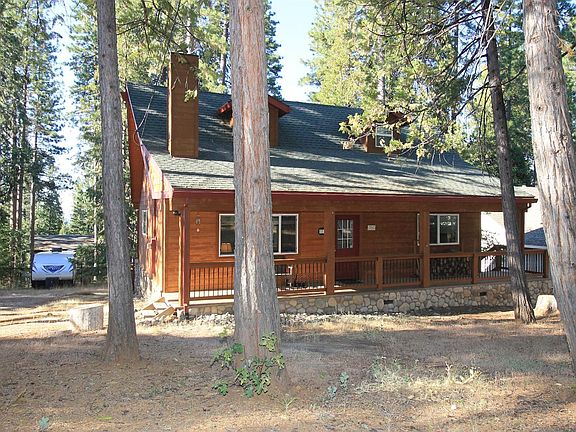 A truly charming mountain getaway in the serene subdivision of Meadowmont just minutes from restaurants, stores, and recreation! Located on one of the first streets to be plowed in the winter this home is easily accessible all season round. Beautiful stone accents and recently stained wood siding lend to the rustic flare of this 1344 square foot, 2 bedroom, 1 bath cottage. Enjoy timeless oak flooring throughout the kitchen complemented by the warm pine ceilings and an abundance of light producing windows. Built in the 60's this home has been renovated inside and out with modern efficiencies such as central heating and air conditioning, dual pane windows, granite counter tops and stone tile back-splash, redone electrical and plumbing, newer light fixtures, and newer stainless steel appliances throughout. The open floor-plan and ample Trex deck is ideal for hosting friends and family alike! Explore the potential of building a garage or auxiliary unit off the main home ideal as an alternative space for storage or a bonus game room. Halfway between Bear Valley Ski Resort and Murphys wine country, it is the perfect place to enjoy all the Sierra landscape has to offer. With most furnishings included all this cabin needs is you!